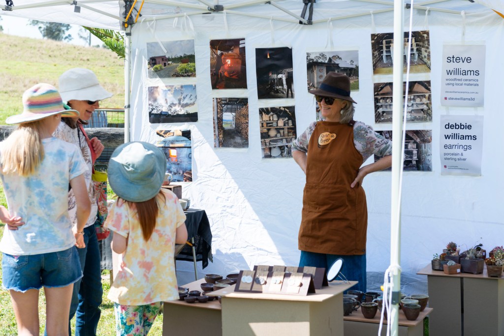 There were demonstrations and workshops in the woodworking and pottery studios by passionate artisans, acting/miming workshops given by resident puppeteers Shake Shake Theatre and cattle dog mustering on the Sunday. The local Macarthur Ceramics Group made a huge display of their ceramics alongside professional potters, Jann Kesby and Steve Williams, who drew crowds with his kick wheel demonstrations and wood firing display.